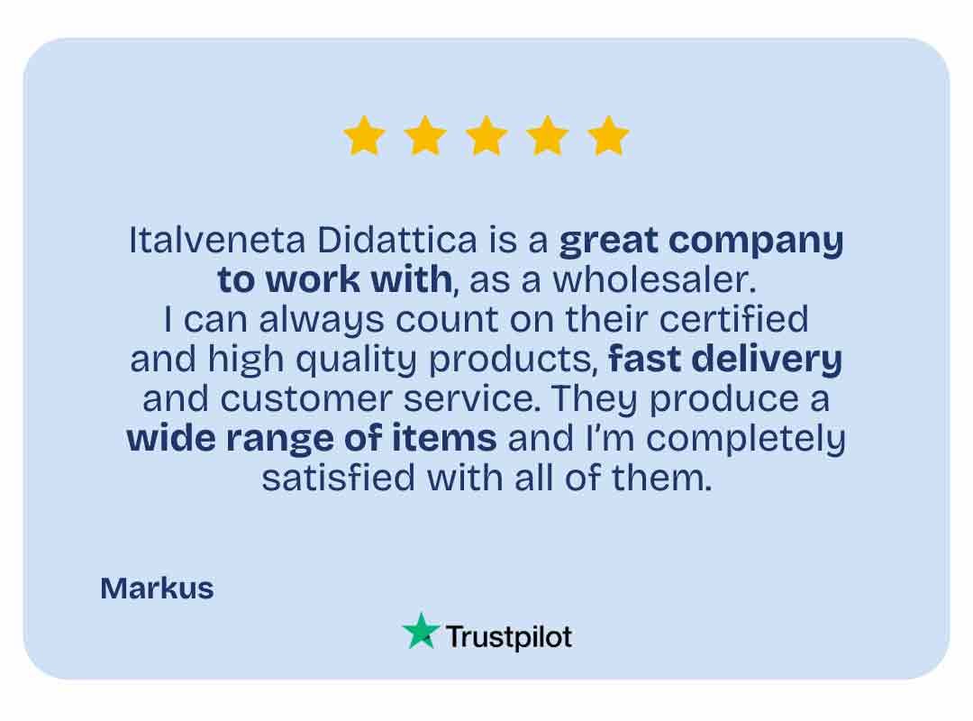 At Italveneta Didattica, we are an Italian company with over 40 years of experience in producing safe and certified educational toys and materials.