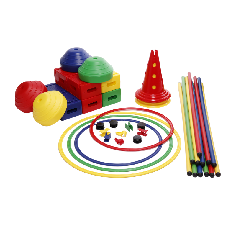 Motor skills activity set for coordination and balance, suitable for various age groups and designed to create different levels of difficulty.