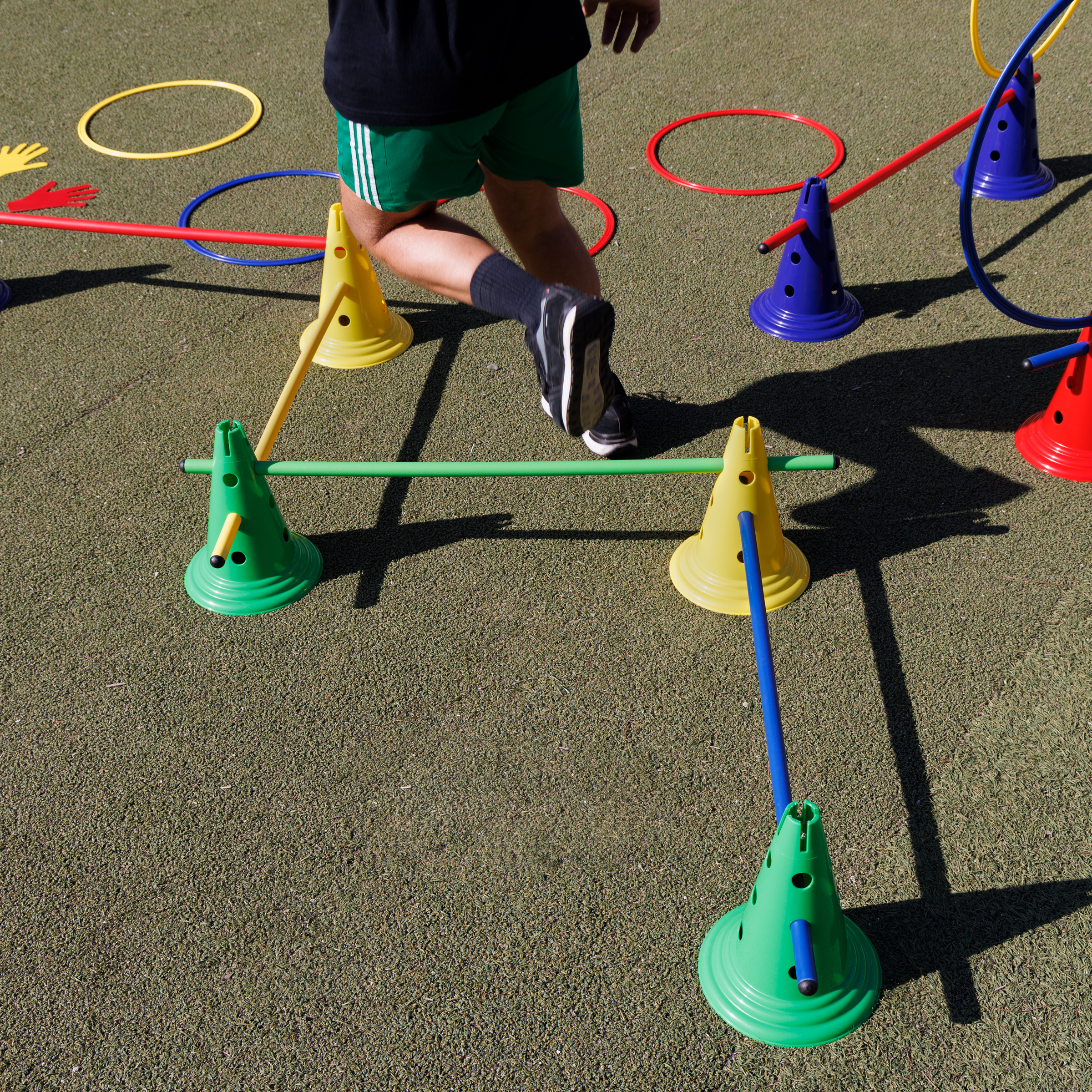 This kit offers endless possibilities for psychomotor activities, perfectly adapting to groups of different ages. Ideal for schools, gyms, sports clubs, and educational environments, it allows the creation of courses with varying difficulty levels, promoting the development of motor skills and active play.