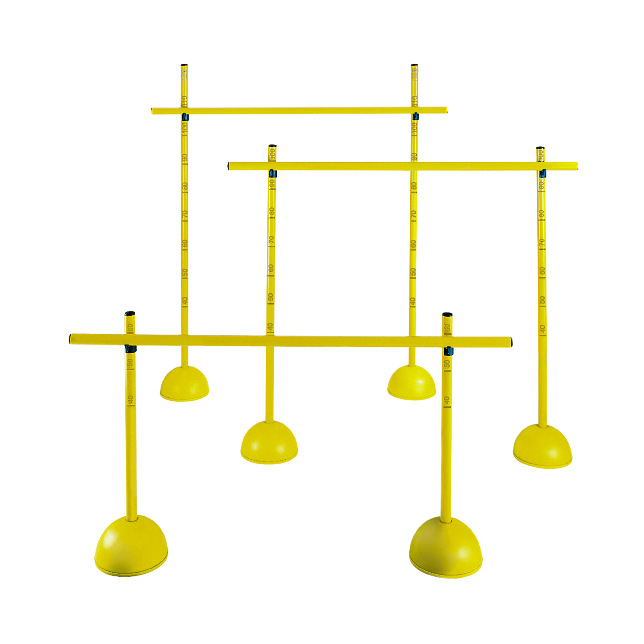 The Hurdle Set with Bases is the ideal accessory for training sessions and sports games, safe and height-adjustable up to 100 cm, perfect for gyms, schools, and outdoor activities.