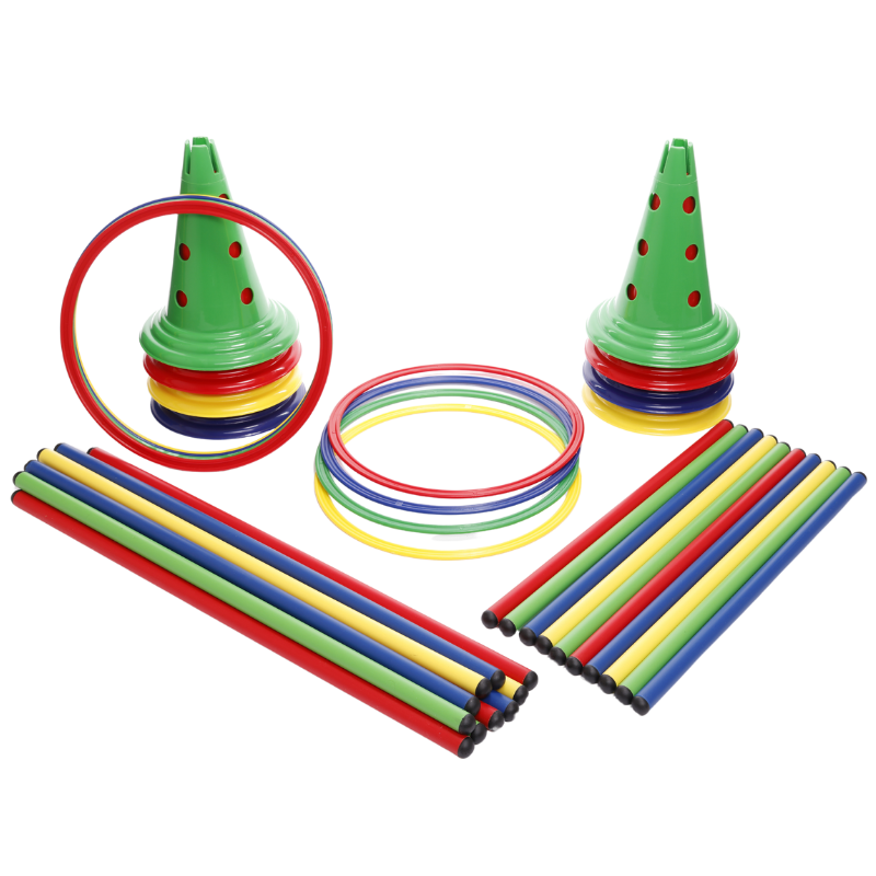 Motor skills activity set for coordination and balance, suitable for various age groups and designed to create different levels of difficulty.