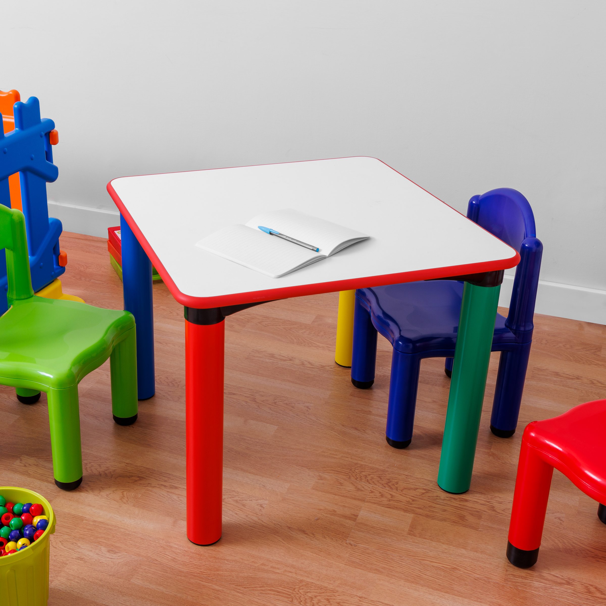The square children’s table is designed with a special structure that combines robustness, safety, and an attractive design, making it perfect for school, recreational, and home environments.